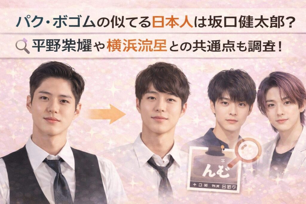韓国ドラマや映画で大人気のパク・ボゴムさん。 その爽やかな笑顔と端正な顔立ちに魅了されている方も多いのではないでしょうか。 そんなパク・ボゴムさんに似ている日本人芸能人がいると話題になっています。 特に坂口健太郎さんや平野紫耀さん、横浜流星... -